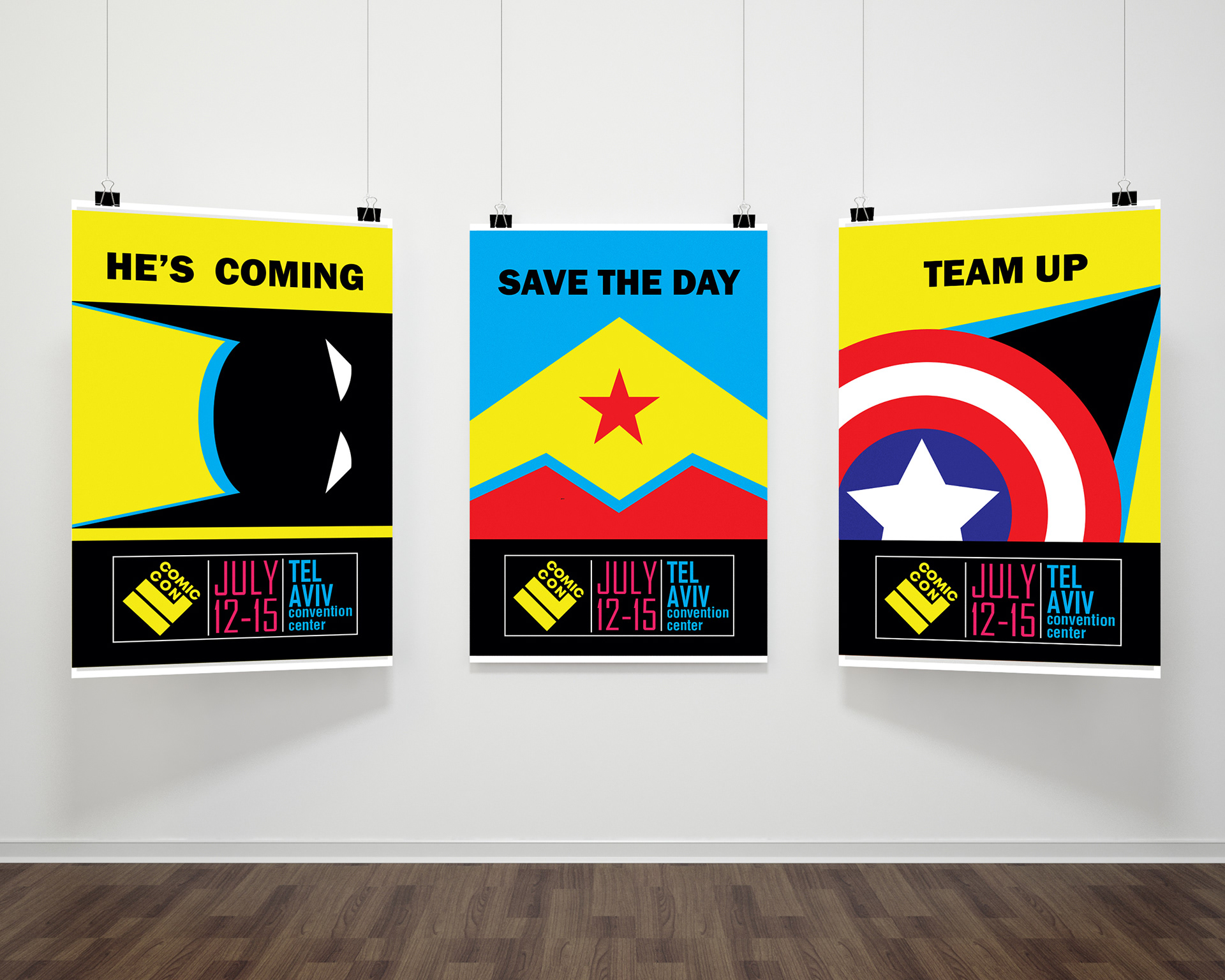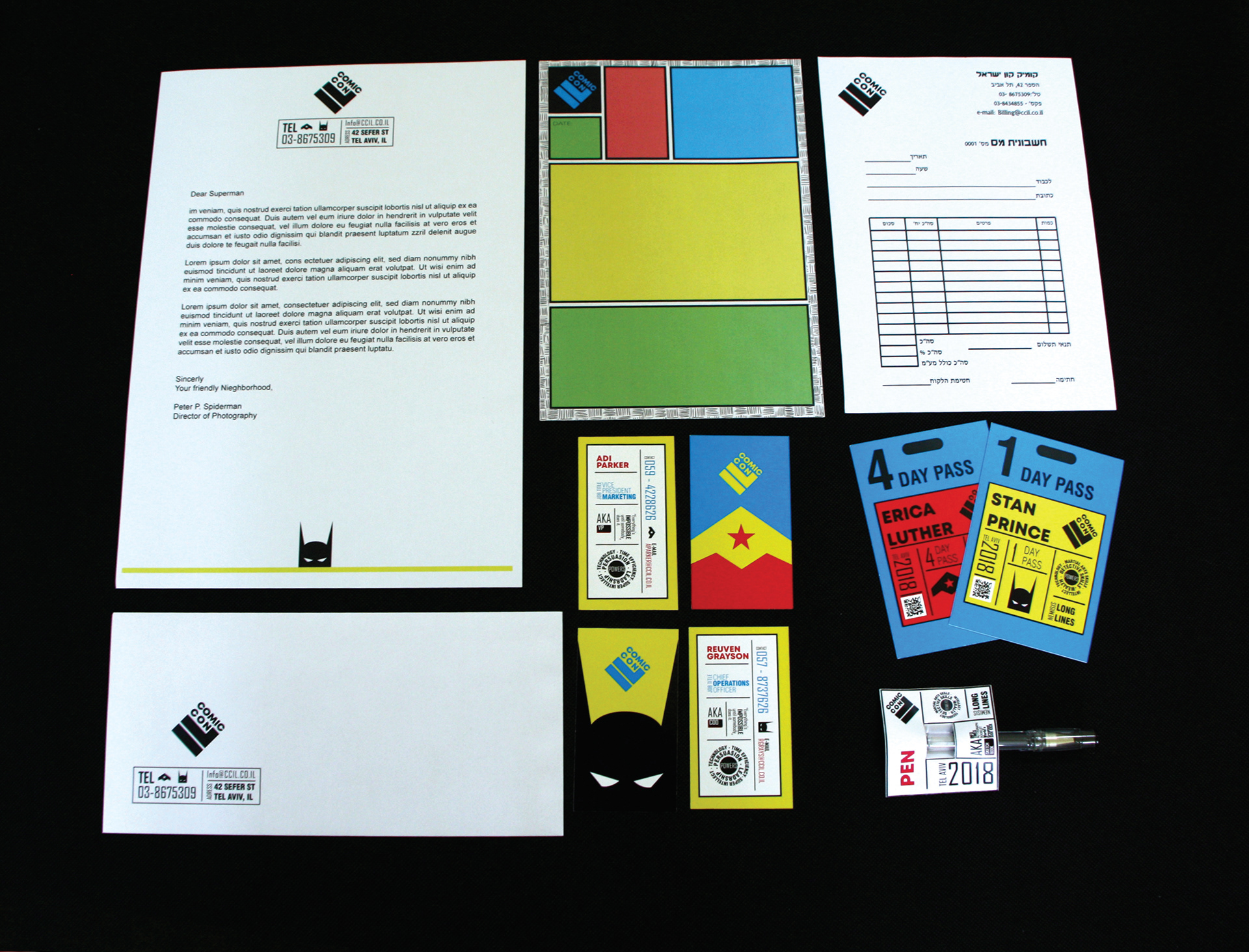 COMIC CON IL (comic con Israel), brand development for comic convention in Israel, including promotional materials, logo, and stationary. This was a student project.