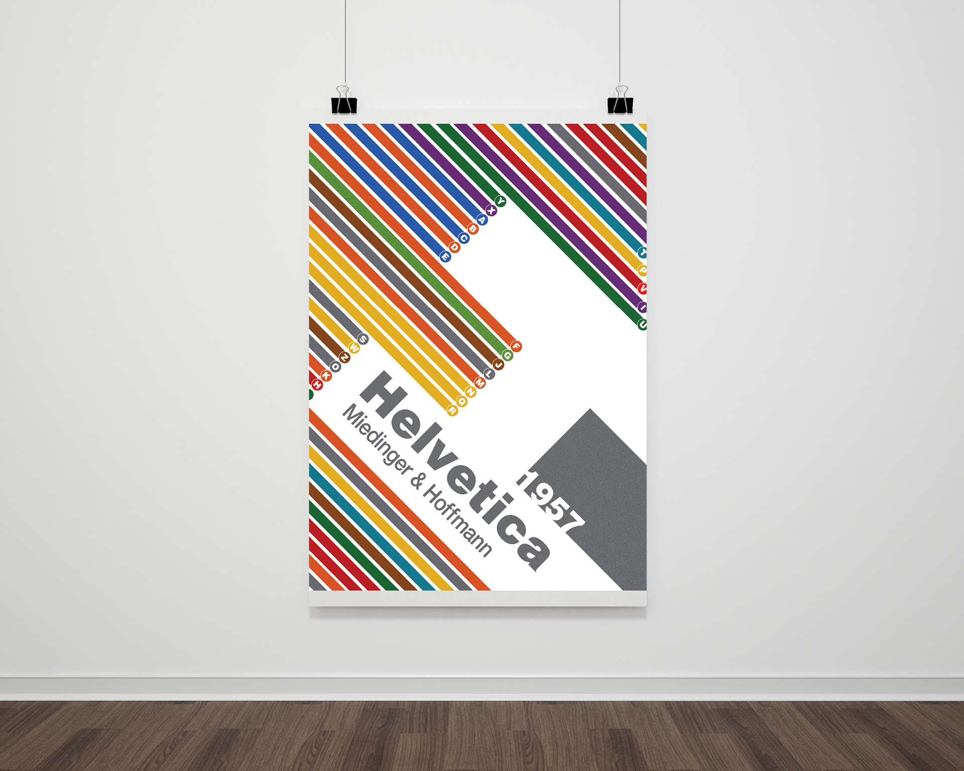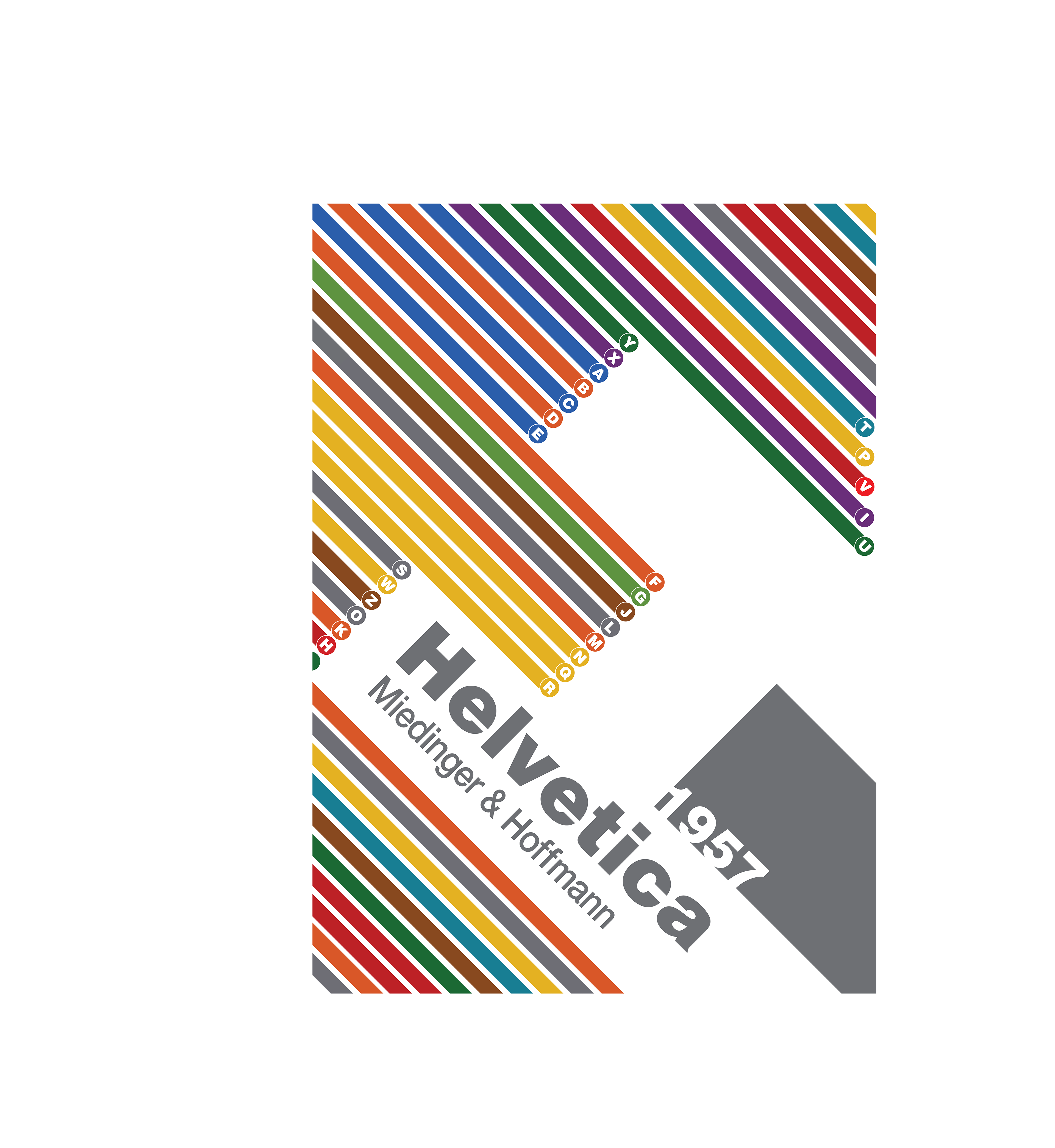 Typography poster for the font Helvetica. Design takes insperation from the NYC subway lines.